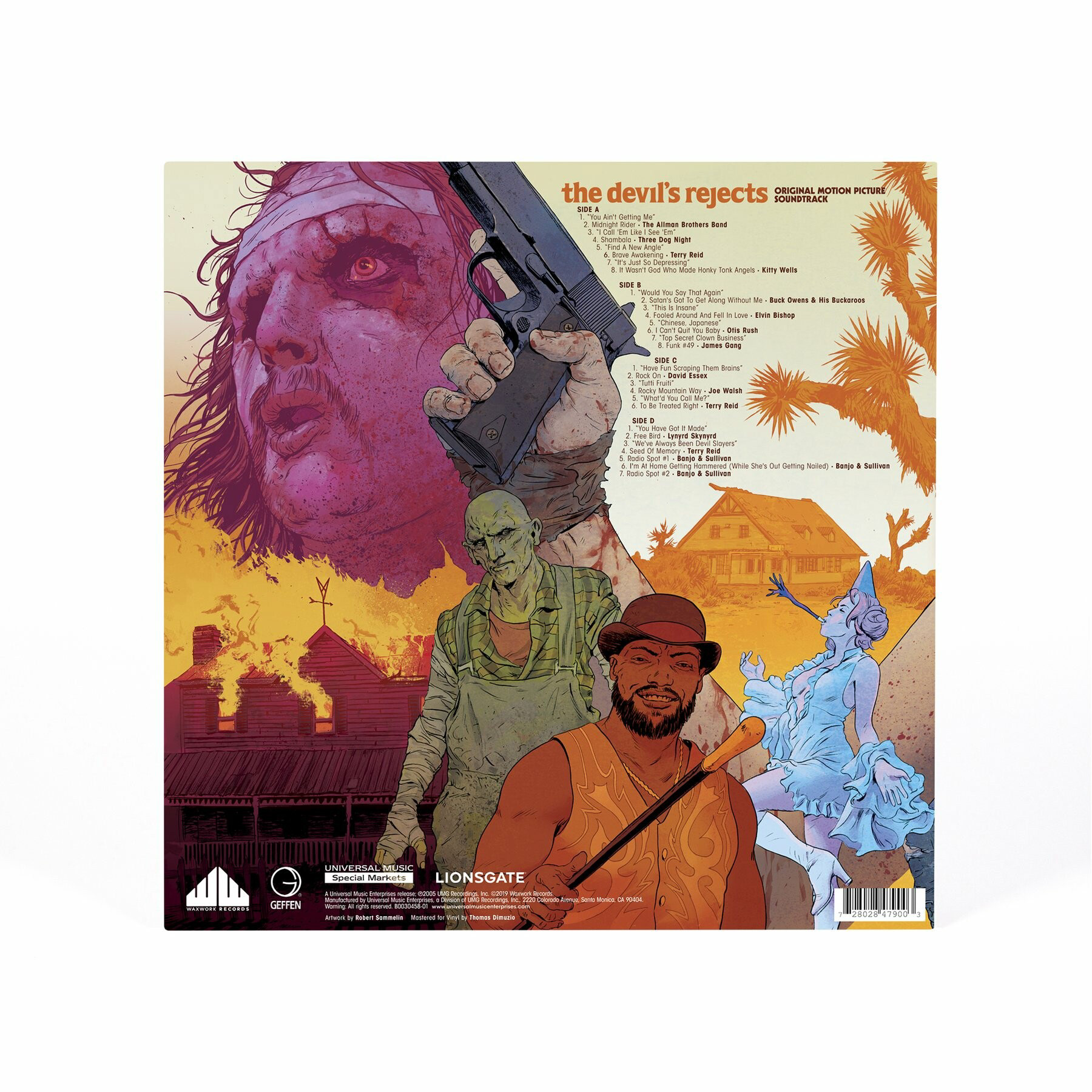Artwork & graphic design for the 2xLP soundtrack from Waxwork Records. Worked closely with Rob Zombie on these and had tons of fun.The Devil's Rejects | Album Artwork