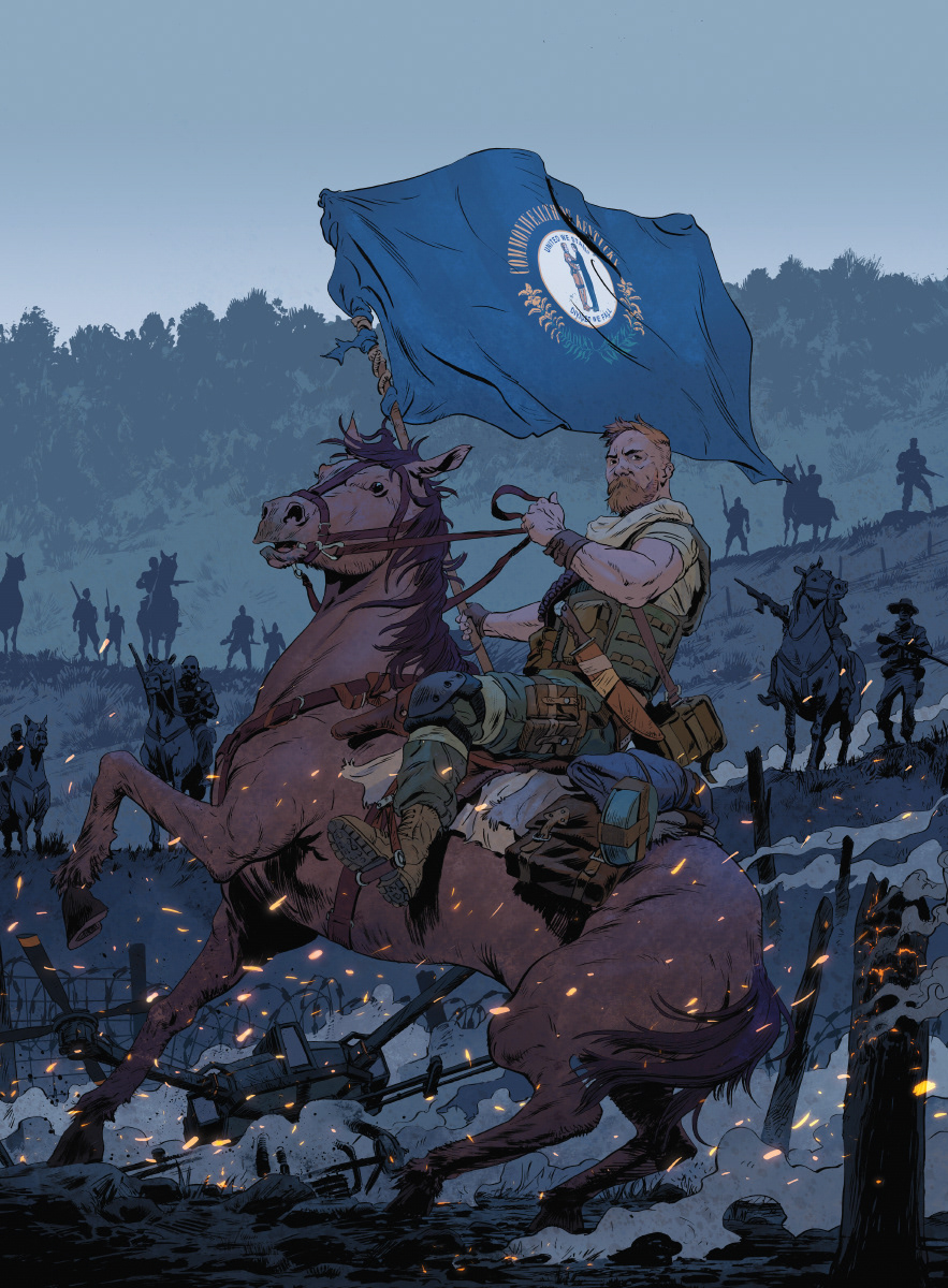 Cover art for issues #1-4 of Warlords Of Appalachia by Phillip Kennedy Johnson and Jonas Scharf. Published by Boom! Studios.